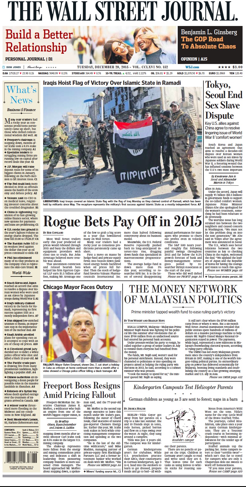 养成每天读报的习惯。了解世界大事,掌握更多资讯,读WSJ是一个很好的选择。敬请订阅2015外文期刊精选 或 按左边头像下方“关注我”。本库将会每天更新相关资讯,不收取论坛币。(流量币请自行在下载页面科普)