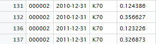 谢谢您的回复,但是可能您没明白我的意思,我想根据第四列的值的大小提取重复的2行中的一行·····您知道怎么做吗?谢谢···············