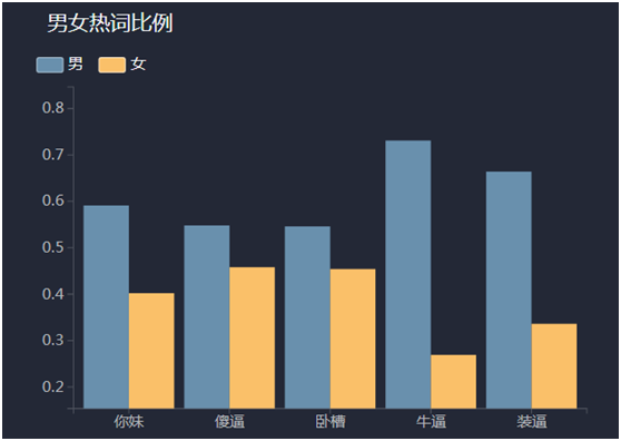 男女“粗口”各有偏好,“傻逼”“卧槽”用最多(来自大数据魔镜作图)