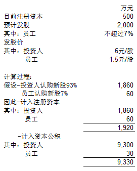 deluk 发表于 2016-1-29 16:08 楼上的解答有问题,卖给员工的1000w股就超过7%了。 总发行2000w股,就是注册资本2000w,约定股面价值为1元 ...