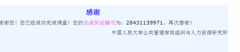 xdpxdp 发表于 2016-1-7 11:30 感谢 谢谢您!您已经成功完成调查!您的完成凭证编号为:92181088072。再次感谢!