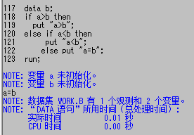 zhjh1204 发表于 2016-1-7 16:37 没有set 数据集,等于新建了一个数据集b,里面变量a和b均为缺失值,a=b