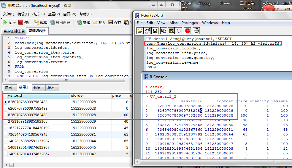 visitorID的长度是11位,我在R语言用sql语句把数导入R进行分析,但发现R的ID号和sql的不一致,后来我把它从mysql导出为excel,再用read.table的方式读取,R跟excel不一致,但excel跟sql是一致的,求高人指点!