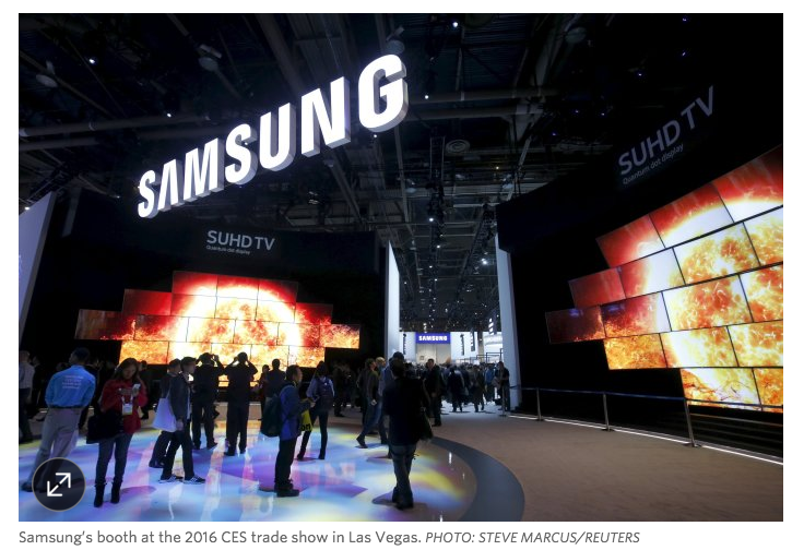 Samsung’s booth at the 2016 CES trade show in Las Vegas. PHOTO: STEVE MARCUS/REUTERS