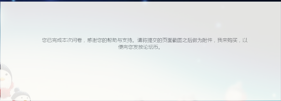 七彩泡泡0122 发表于 2016-1-20 21:40 请问我已经答完问卷而且已经上传了附件 论坛币什么时候给啊 我的填写的邮箱是568165216@qq.com