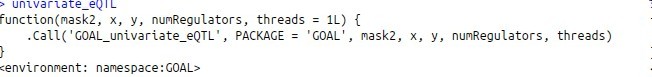 jiangbeilu 发表于 2016-1-12 16:16 这里用的.Call函数,是说明引用了内置函数GOAL_univariate_eQTL. 在src文件里找关于C或者cpp的文件。然 ...