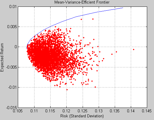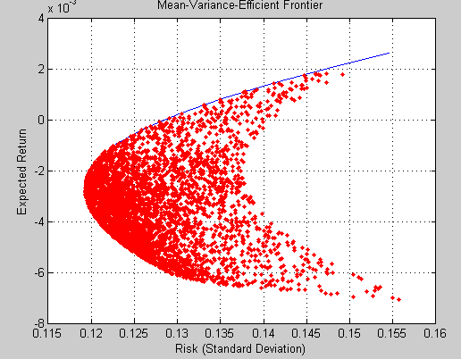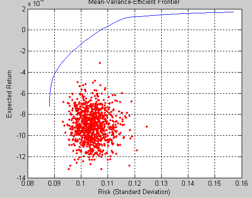请问哪些大侠知道这是怎么回事呢:我选择10支股票做投资组合分析,用matlab仿真出来其M-V有效前沿与可行域没有重合、而且分得很开,然而在这10支中任选3支和5支,它们的仿真效果却比较好(有效前沿和可行域重合得比较好)。——按投资理论,组合中的股票数越多、风险越分散,可行域与有效前沿重合得越好;可我的结果恰恰相反,不知为什么,敬请各位指点。谢谢。