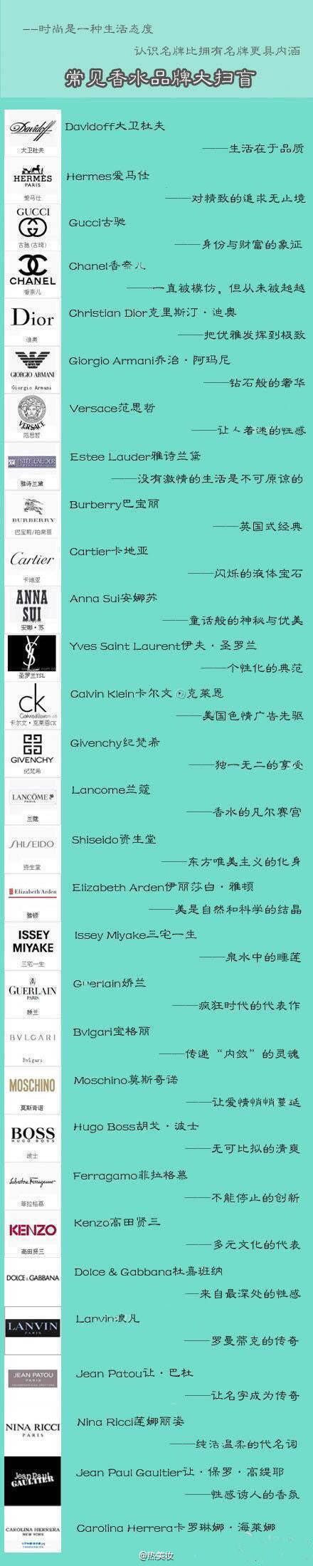 全球知名香水品牌