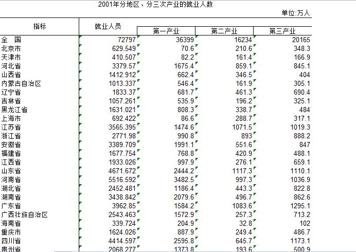 三大产业各省就业
