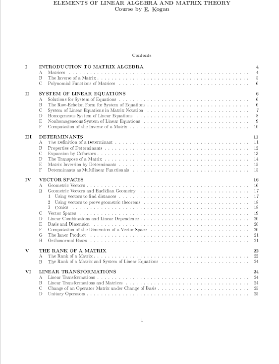 线性代数和矩阵理论基础 Elements of Linear Algebra and Matrix Theory-course by E. kogan.rar