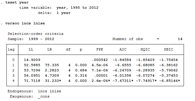 stata设置好时间序列后,判断VAR模型阶数时时间数据改变了
