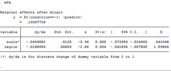 chongzhi 发表于 2016-1-22 19:09 你估计的是平均边际效应,你的scale和region有什么具体含义吗?可以做一些解释了