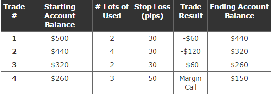 在总共4次交易后,你的交易账户从500美元降至150美元。70%的损失!你损失剩下的金额不会花太长的时间。