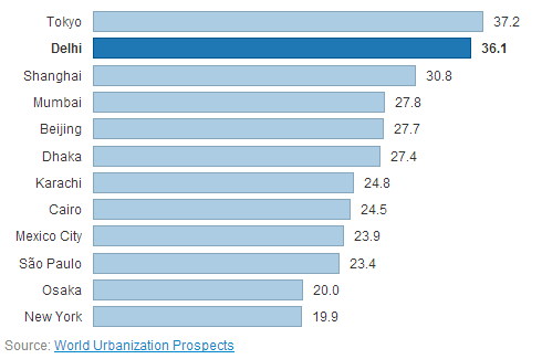 6.到2030年,全球预计会有41座人口超千万的巨型城市。东京依然是最大的城市,德里紧随其后。