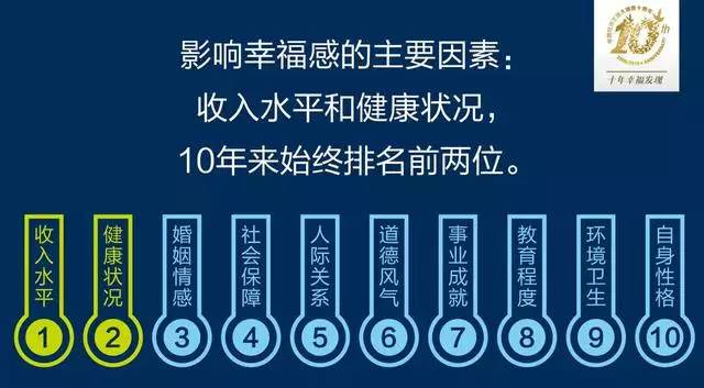 不过,收入水平在过去十年的调查里成为了影响百姓幸福感最重要的因素,除此之外,健康状况和婚姻状况也尤为重要。