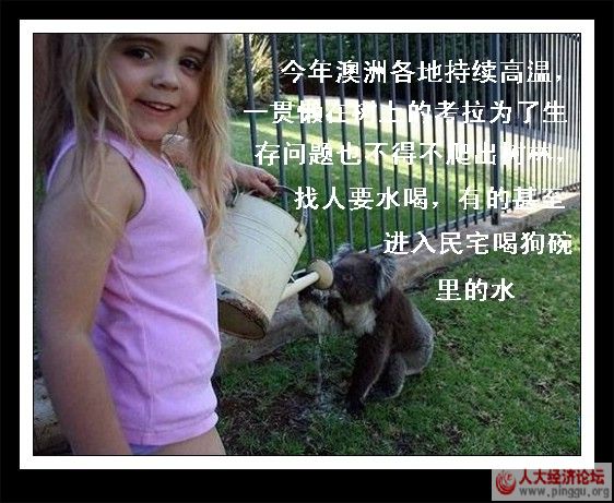 之后无奈打电话给一些读环境专业的人问怎么回事。 后来得到的答案是,最近干旱,要是身边有水给点水就可以了。 因为澳洲夏天太干旱,所以考拉都形成习惯,有过路的人看到他们就会给他们点水喝。但是别给太多,不能给冰水,不然考拉会病得. 还要我看看这只考拉又没有受伤,要是有就要立刻报警,或者把他送去医院(fiant,我都不是兽医,怎么知道).