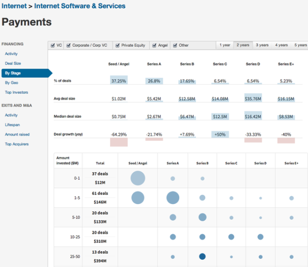 在此不得不重点介绍下CB Insights和PitchBook。CB Insights作为一家有着金融行业背景的纽约初创数据公司,在集成行业数据和数据分析上做得相当出色,他们定期的行业数据分析报告为VC和其他相关媒体机构广为应用,而他们推出的不少可视化数据分析工具也颇有价值。PitchBook也有着出色的可视化数据平台,但是他们的产品则针对各初创公司提供了更为具体的信息,丰富的VC数据库也为创业者和投资者们提供了检视各家VC具体信息的平台。当然,36Kr+数据库对于国内的VC和创业者们来说是一个很好的工具,我们也会不断改进完善我们的数据库、添加新的功能,以更好地服务国内的创业者和投资人们。