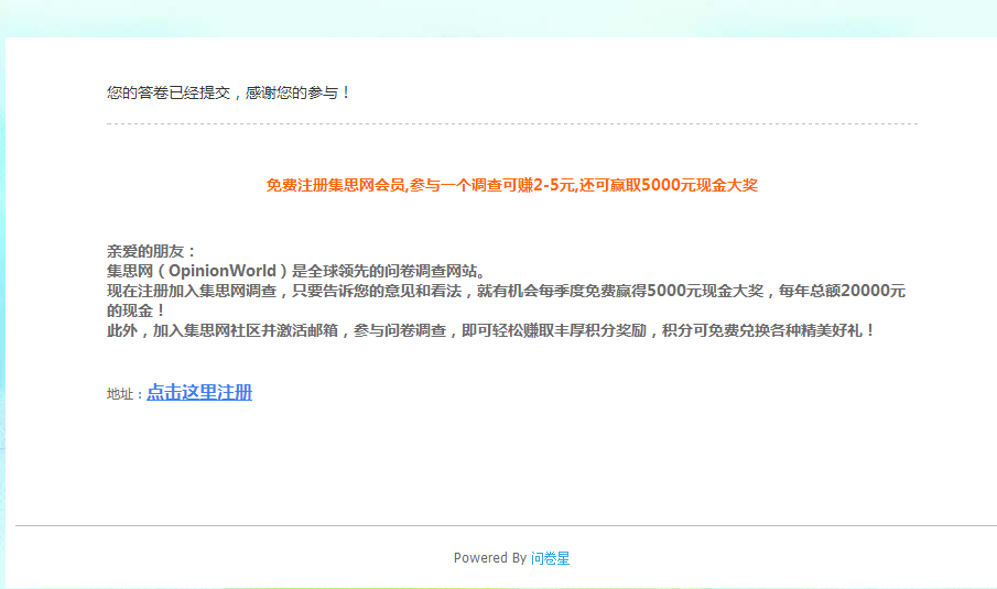 凤舞星宸 发表于 2016-3-8 19:15 问卷填写完毕,请查收