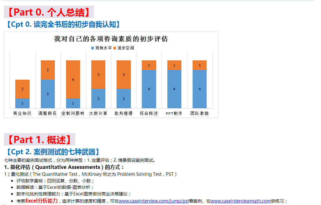3. 刚刚起步,准备着手读《Case Interview Secrets》,您可以快速通读本文,当做原书的中文摘要,可以提高您的阅读速度,也可以辅助您做笔记;