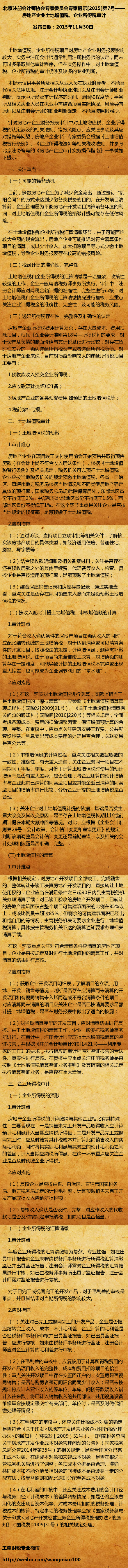 北京注册会计师协会专家委员会专家提示[2015]第7号——房地产企业土地增值税、企业所得税审计