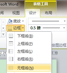 接着,选择整个表格,设计——表框——无框线。