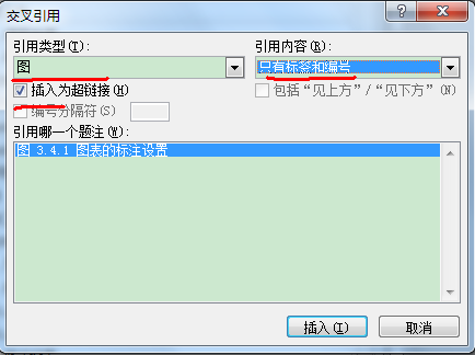 接着我们需要引用。单击「交叉引用」。如下选择。插入。