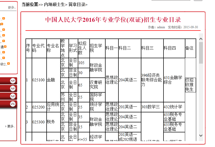 2016人大招生简章里金融专业硕士是仅仅招收推免生吗?