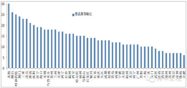 这篇文章里指出,数据显示,截止2015年第三季度库存去化周期较长的城市分别为北海(30)、烟台(26)、呼和浩特(25)、三亚(23)、茂名(23)、淮南(21)、沈阳(20)、济宁(19)、海口(19)。