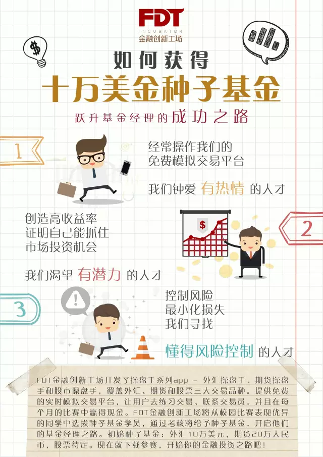 史上最强的FDT全球大学生投资大赛由专业导师组队带你与全球顶尖高校团队对抗,比赛总奖金高达近百万元,还独家免费提供10万美元实盘账户,两成收益归你,更有机会长期保留实盘!