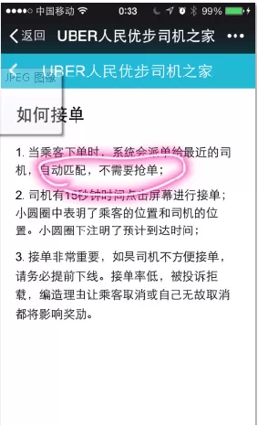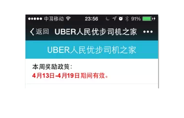 最后一条关于推荐奖励,介绍朋友成为人民优步的司机后,不是直接奖励200元,而是被介绍的新司机在做满20单以后,你看,这个又是我刚才说的原则,司机们,给我跑起来,出去接客去~~是不是像极了窑子里妈妈桑的声音?是的,只不过人家Uber用经济杠杆,而不是直接吆喝。