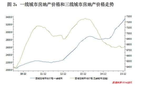 国内房地产价格上行已经完全变成一个货币现象,变成信用扩张的产物。在2011年之前中国的房地产周期既有信用扩张因素,又有人口周期支撑,地产价格在合理的范围之内;进入2011年之后,特别是2013年以后,房地产市场更多地呈现货币属性,逐步从双轮驱动转化为信用单轮驱动。明显的例证即2013年前后一线房地产市场和三线房地产市场出现明显分化,全国来看房地产市场进入拐点,而一线房地产市场则进入加速扩张周期之中。
