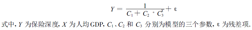 X代表人均GDP,Y代表保险深度,C1、C2、C3代表三个参数,最后一项为残差。