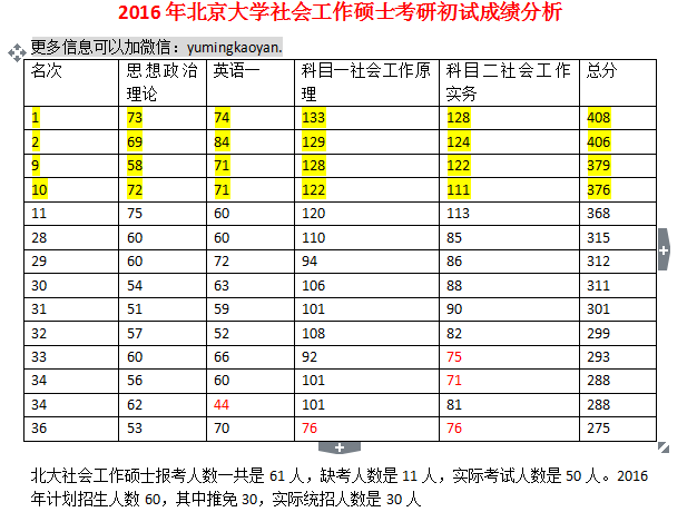 名师讲解-2016年北京大学社会工作硕士考研初试成绩分析