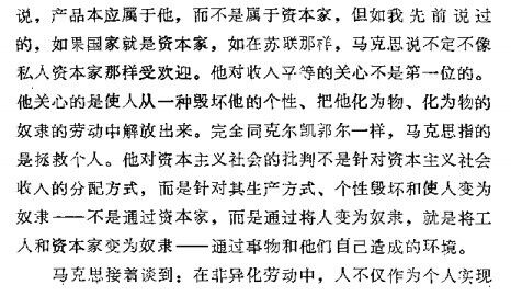 马克思指的是拯救个人。他对资本主义社会的批判不是针对资本主义社会收入的分配方式,而是针对其生产方式、个性毁坏和使人变为奴隶——不是通过资本家,而是通过将人变为奴隶,就是将工人和资本家变为奴隶——通过事物和他们自己造成的环境。