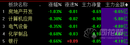 资金净流出板块TOP5: