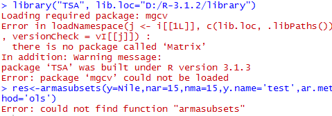 jiangbeilu 发表于 2016-3-13 12:52 你要安装Rtools吧,昨天我在一台新的电脑上安装最新版的R,在windows上,32位的系统,完全可以使用TSA包。