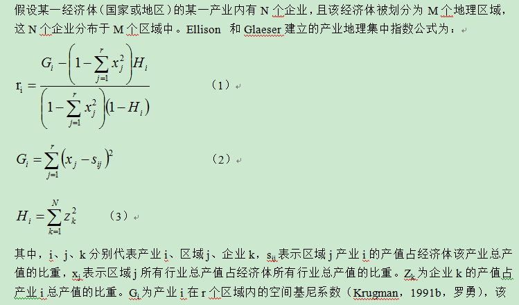 小韩同学QAQ 发表于 2021-7-13 14:32 EGI是加总到行业,我觉得产业集聚和地区以及产业有关,所以就自己写了一个