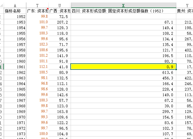 其中四川省61年的指数仅为0.9,学渣在根据张军的计算方法核算物资资本存量,要根据固定资产形成总额指数核算当年的固定资产价格投资指数,按0.9的话,核算出来61年的固定资产价格投资指数相当大,要是再进一步核算以1952年为基期的指数不断累乘的话,结果可能会比较可怕。