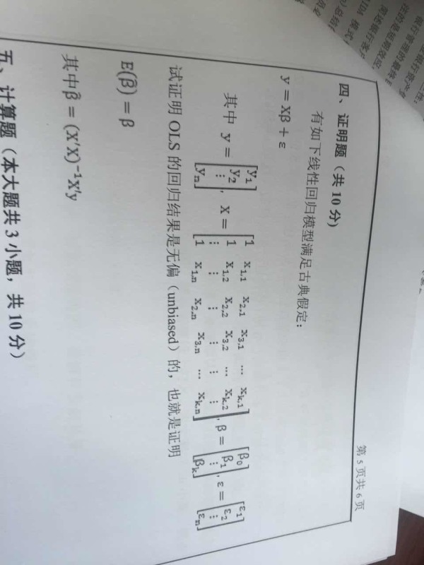 北美计量经济学考题 (9题,悬赏每题20个币)