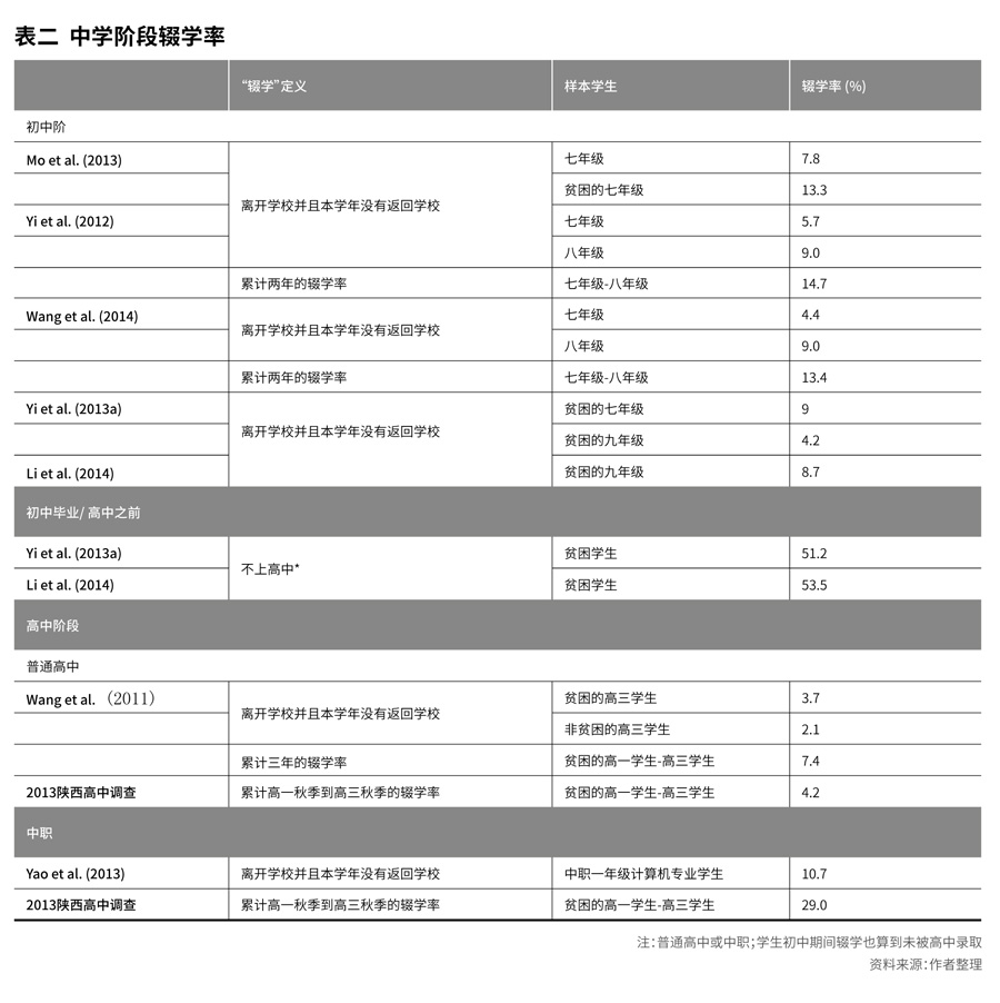 长期以来,教育被认为是促进一个国家经济发展的最重要的推动力之一。中国的历史也同样印证了教育在增进经济发展水平上发挥的重大作用:1979年改革开放前的高比例的小学入学率和初中入学率,被认为是中国经济在之后30余年迅速增长的重要原因之一。在东亚其他国家,20世纪下半叶经济增长最快的都是那些中学入学率高的国家。八次大规模调研,来自四省24931名农村中学生的数据,以及与52名样本地区农村学生深入访谈,我们发现,农村地区整个中学阶段的累计辍学率高达63%