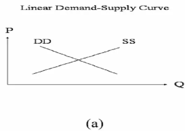 图1 线性和非线性的供求曲线,对应自稳定和非稳定的市场机制