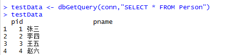 testData <-dbGetQuery(conn,"SELECT * FROM Person")