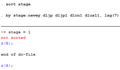 【【不论我是否单独运行了sort stage,甚至加上了tsset date1;还是紧挨着by stage:reg 命令一起运行,都不行】】