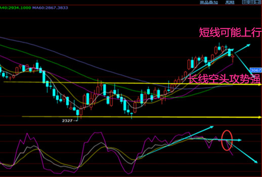 下周本是空头趋势,但由于库存数据爆出,24日晚间多头追位,当日阳线收盘,动能红柱冒头。故下周一整体看空但不能盲目追空,不排除沥青有跳空高开情况。
