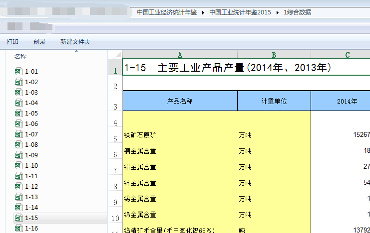 中国工业统计年鉴2015(excel版).zip