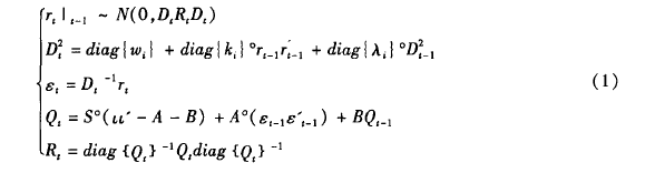 R(t)=diag(Q(t))^-1*Q(t)*diag(Q(t))^-1,所以疑问的是H(t)和Q(t)是什么关系????H(t)是条件协方差矩阵,Q(t)呢,我也觉得也是条件协方差矩阵,所以要预测H(t)却用等价的Q(t)预测R(t),之后再预测H(t)吗?好混乱啊