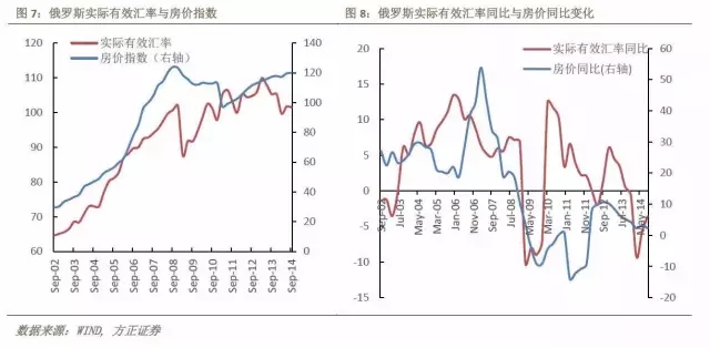 2002年-2008年中期,随着国际油价的不断上涨,俄罗斯经济得到快速发展,出于对俄罗斯未来经济走势的看好,俄罗斯卢布的预期处于升值通道,此时俄罗斯房价大幅上升;而从2007年中期到2008年下半年,俄罗斯的经济发展受到全球性的金融危机和油价大幅下挫的影响,卢布经历了大幅贬值的冲击,此时房价达到顶点。之后油价回调,约在2011年5月达到局部高位。在此期间内,出于对俄罗斯经济的悲观预期,房地产价格下挫较多。