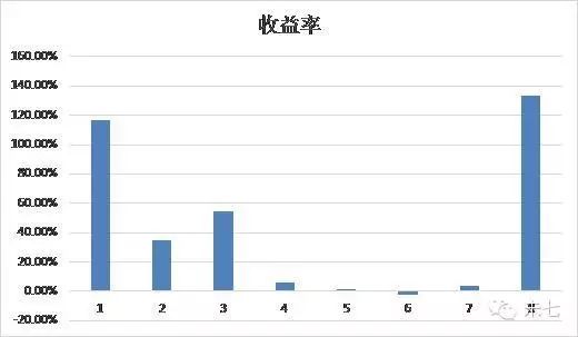 昨天介绍的策略,存在较大的噪声,交易周期短,交易频繁。为了过滤局部波动,本文在进仓点增加了更多的限制条件,同时更新数据至2016年3月31日,起点依旧为2006年1月4日。模拟策略净值涨到11.46,最大回撤只有2.27%,胜率高达87.5%,10年期间,只交易了8次。各期收益率如下: