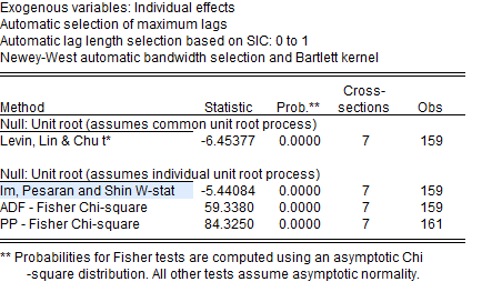如图所示的根检验结果,请教这结果大神怎么看?是平稳还是非平稳呢?另外如果我要做对数模型的话,是检验对数变量的平稳性还是原变量就可以了呀?