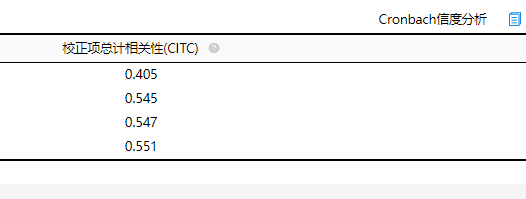 网页版SPSSAU可以的得到CITC值,在问卷板块下的信度分析,如果CITC值低于0.3,可考虑将该项进行删除(仅参考)